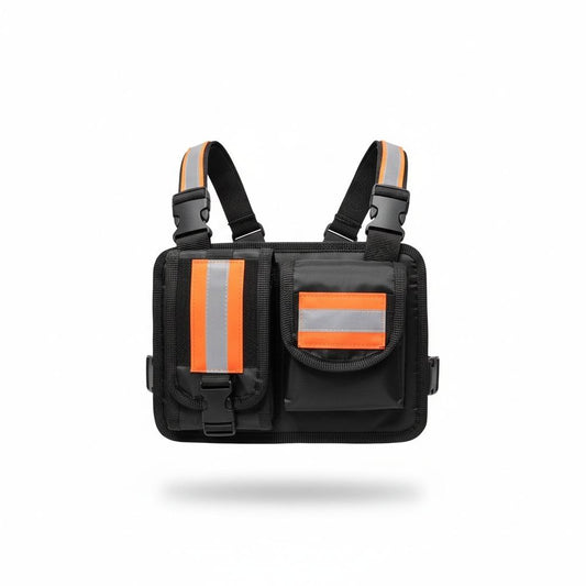 PECHERA TACTICA DEPORTIVA BANDAS REFLECTIVA DESMONTABLE / BOLSO FRONTAL DE ALMACENAMIENTO EXPANSIBLE